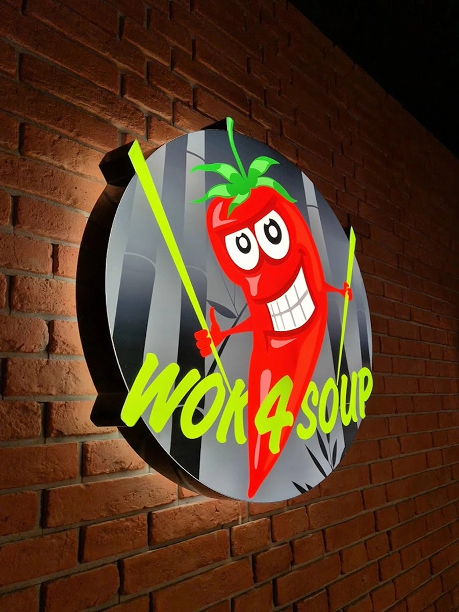 Kluczowym elementem plafonu jest lico wykonane z pleksi opal, które wycinamy laserowo, aby uzyskać idealny okrąg lub owal. Wewnątrz konstrukcji montujemy moduły LED o szerokim kącie świecenia. Ze względu na specyficzny kształt plafonów, układamy elektronikę w sposób pierścieniowy, co gwarantuje, że światło rozchodzi się równomiernie od środka aż po same brzegi reklamy. Dzięki temu unikamy nieestetycznych cieni, a logotyp prezentuje się nienagannie o każdej porze dnia.
