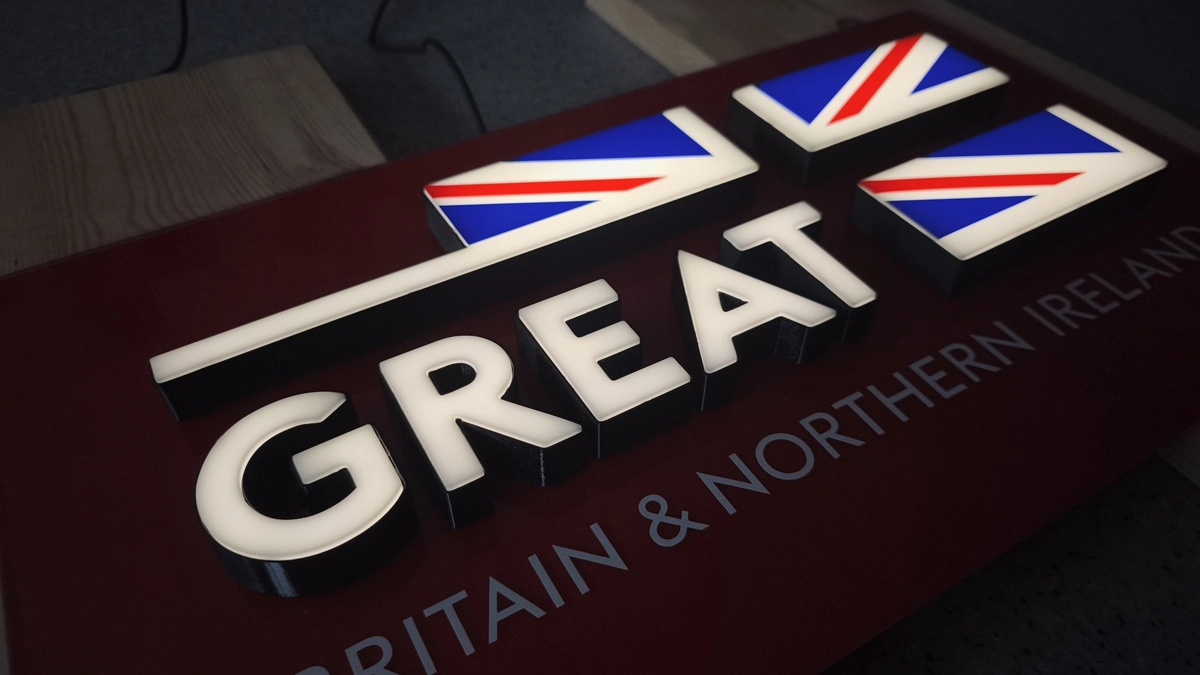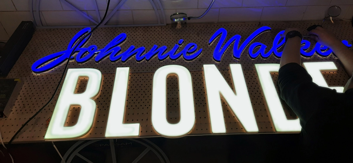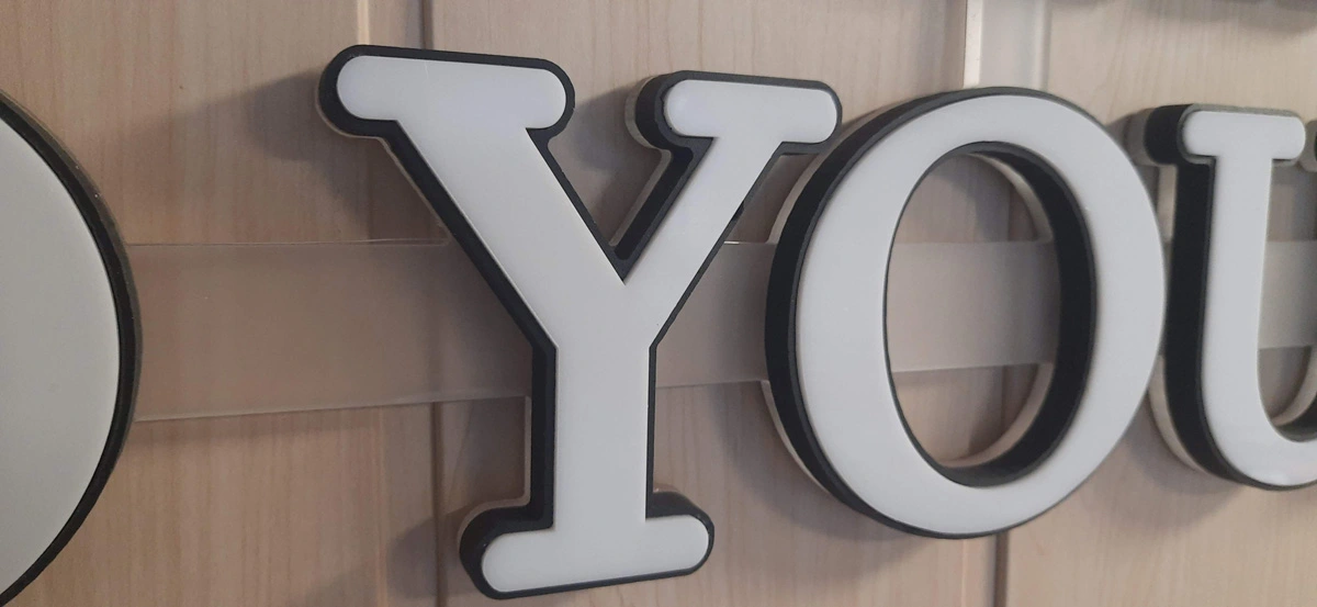 Podświetlenie krawędziowe (brzegowe) RGB. Stosowane w wąskich elementach jak litery i linie. Ta technika pozwala na precyzyjne wprowadzanie źródła światła w niewielkie koryta konstrukcyjne, co jest kluczowe przy skomplikowanych krojach pisma i sprawdza się w wąskich elementach.