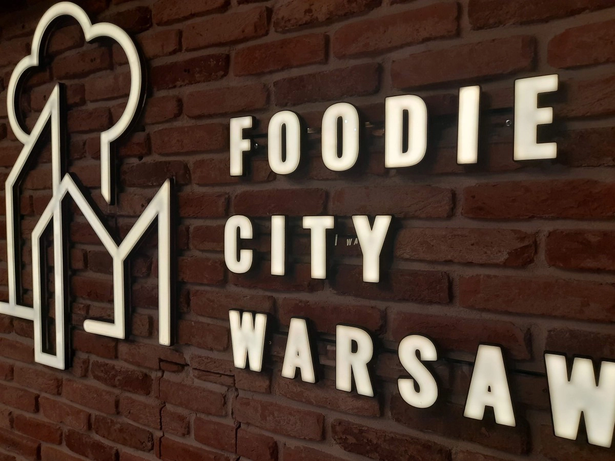 W wydrukowanych kanałach instalujemy taśmy LED o bardzo gęstym rozmieszczeniu diod. Kluczowym etapem jest  zamknięcie ich dopasowanym kloszem z pleksi. Dzięki temu zabiegowi światło jest idealnie rozproszone, tworząc jednolitą, intensywną linię bez widocznych punktów świetlnych. Ledony projektowane w naszej warszawskiej pracowni charakteryzują się bardzo szerokim kątem świecenia, co sprawia, że są doskonale czytelne nawet pod dużym skosem, co jest kluczowe w wąskich uliczkach Śródmieścia.