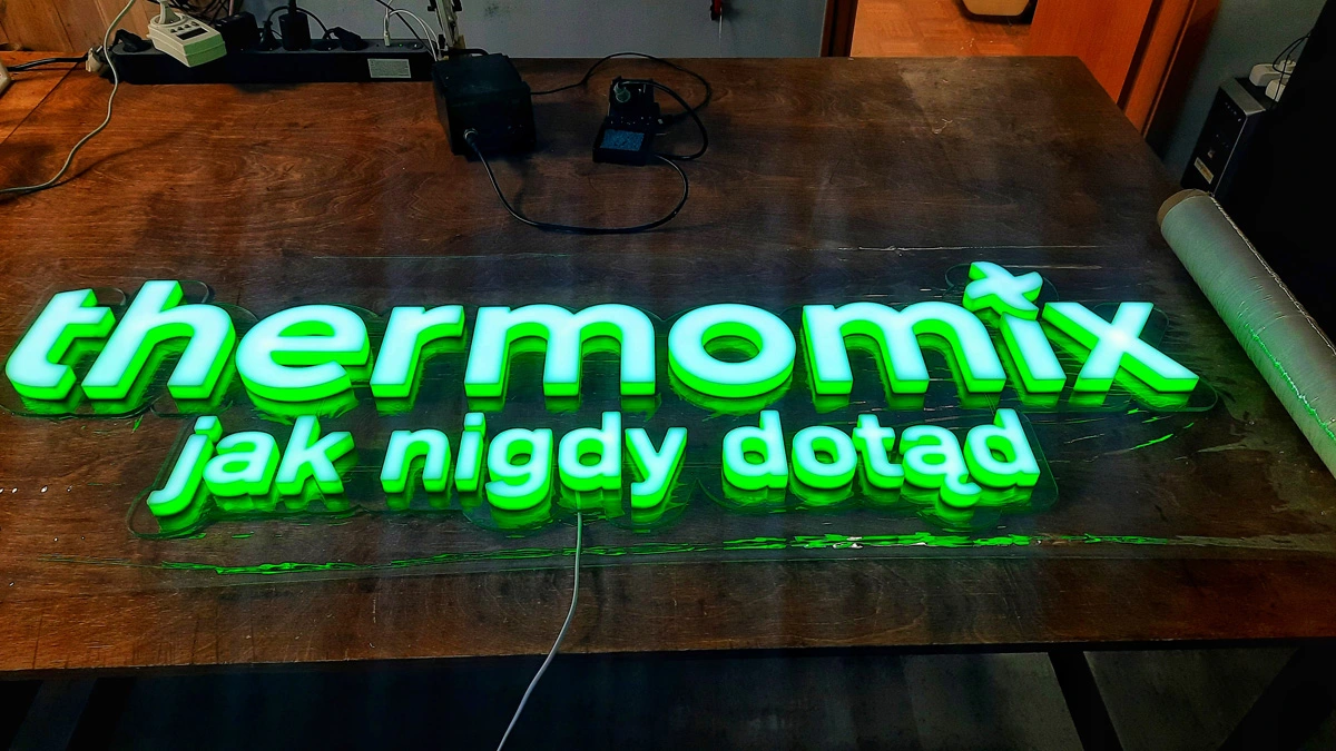 Gotowe Ledony montujemy bezpośrednio do ściany lub na dystansach, które pozwalają na uzyskanie efektu „odstawania” od ściany, co dodaje reklamie lekkości. Na tym etapie możemy zastosować dodatkowe filtry kolorystyczne lub sterowniki pozwalające na pulsowanie światła czy zmianę jego natężenia. To idealne rozwiązanie dla warszawskich biur, kawiarni i butików, które szukają reklamy nowoczesnej, bezpiecznej i niezwykle efektownej wizualnie.