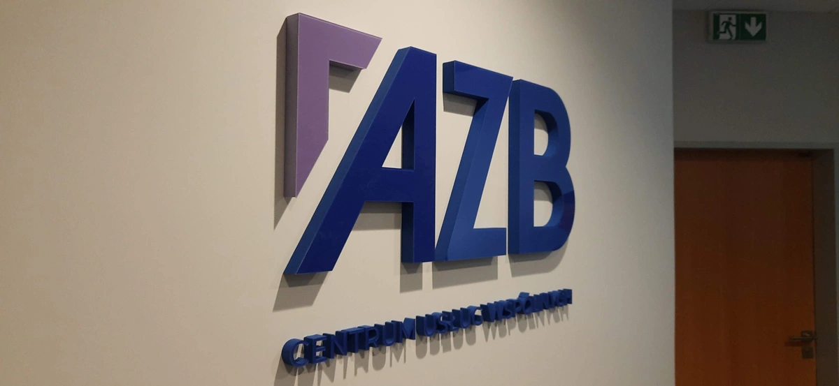 Litery przestrzenne bez światła są często elementem systemów informacji wizualnej w warszawskich biurowcach, pomagając w nawigacji. Przeczytaj o idei systemów orientacji w przestrzeni.