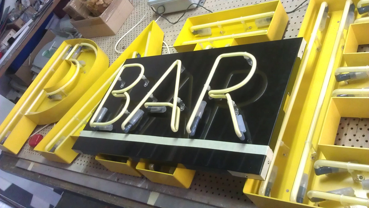 Neony gazowe powstają w kilku krokach: kształtowanie, pokrywanie luminoforem, mocowanie elektrod, napełnienie gazem oraz utwardzenie. Proces utwardzania trwa 4 doby, Proces ten służy do uzyskania pełnej jasności świecenia i wykrycia mikrouszkodzeń.