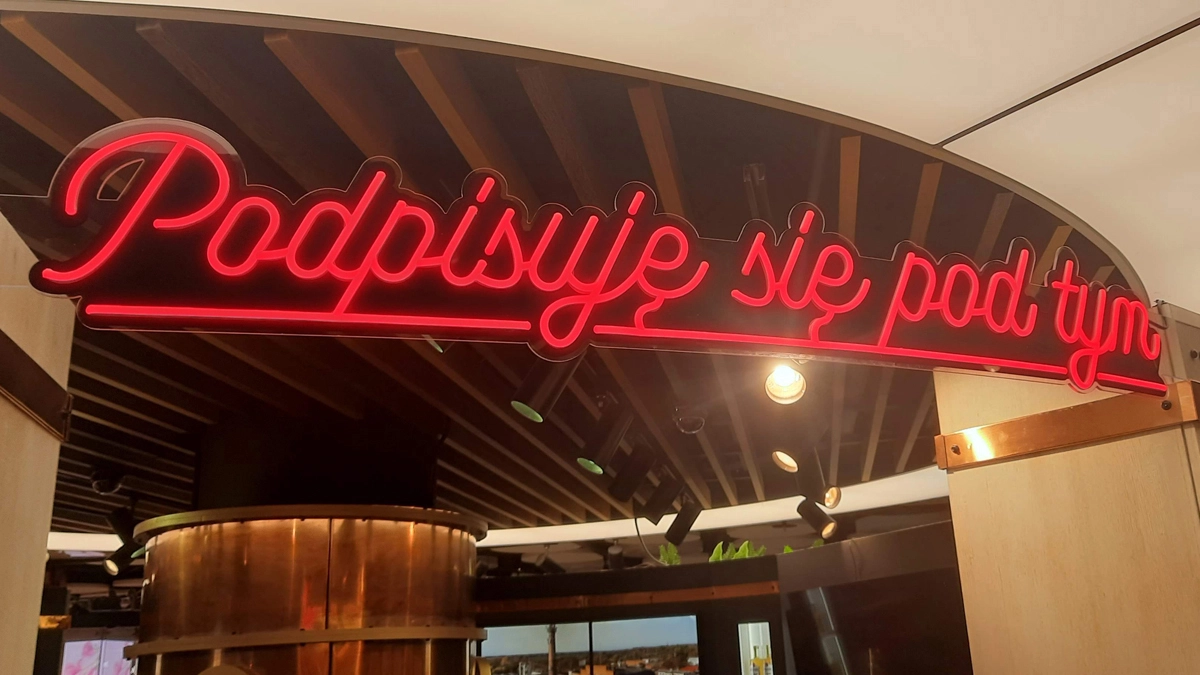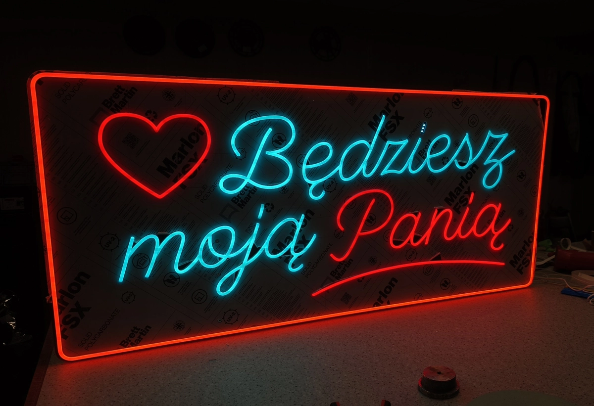 Gotowy neon LED poddajemy rygorystycznym testom świecenia i stabilności napięcia w naszej warszawskiej pracowni. Sprawdzamy czystość krawędzi oraz poprawność działania zasilacza i ewentualnych sterowników (np. ściemniaczy). Jeśli neon ma być zamontowany w Warszawie lub okolicach, przygotowujemy odpowiedni system montażowy – eleganckie dystanse chromowane lub system zawieszek linkowych. Efektem końcowym jest bezpieczny, lekki i energooszczędny produkt, który od razu po podłączeniu przyciąga wzrok i buduje klimat wnętrza.
